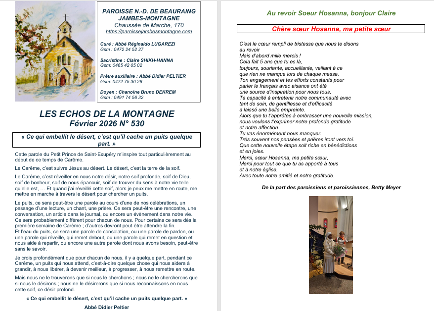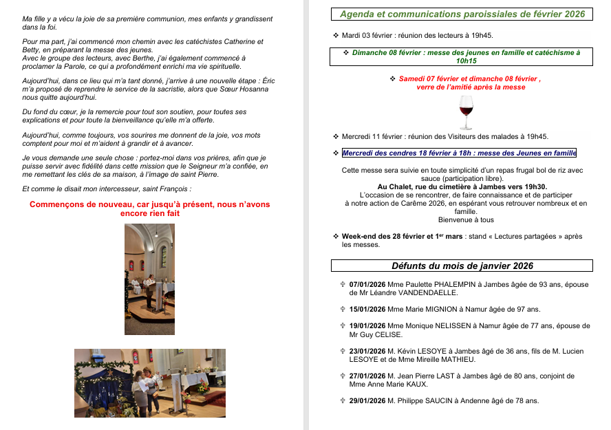 Feuillet paroissial du mois de février 2026 .